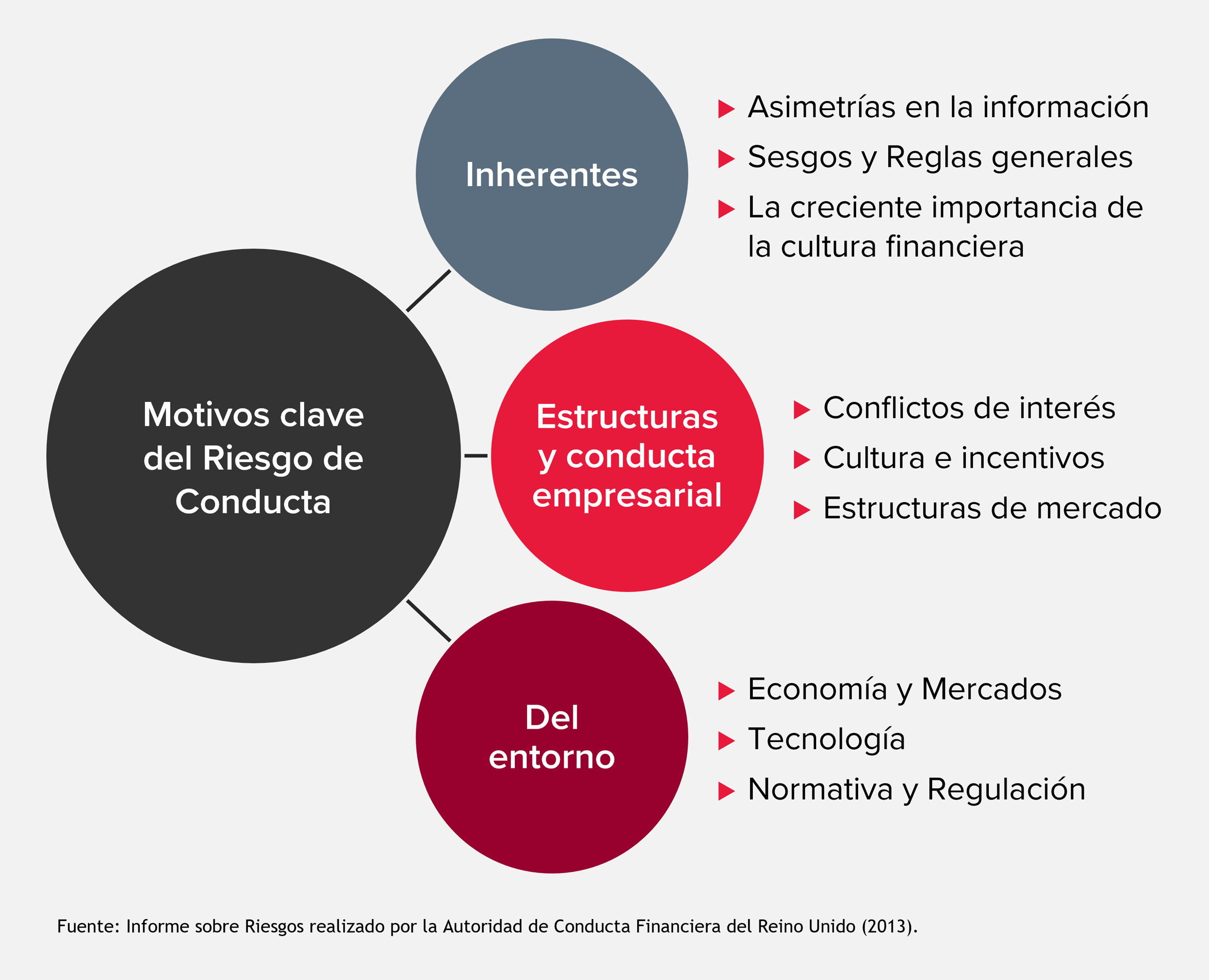 La FCA (Autoridad de Conducta Financiera), organismo responsable de regular el sector financiero en Reino Unido define el riesgo de conducta como “cualquier acción de una empresa o individuo regulado que resulte en perjuicio al cliente o tenga un efecto negativo en la integridad del mercado o la competencia efectiva.”